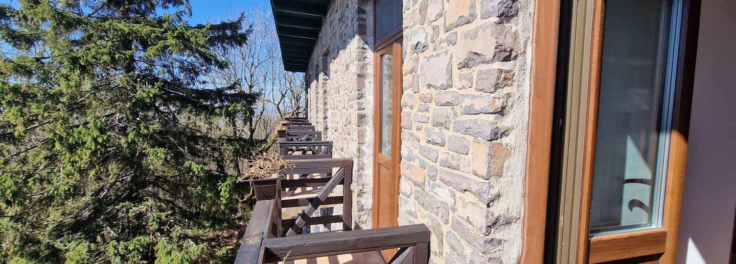 Szobánk ablakaiból a Börzsöny völgyei tárulnak elénk, nyugalmat és friss levegőt kínálva.
