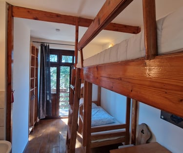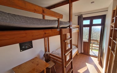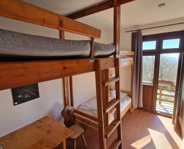 A tágas erdei szoba kényelmes, természetközeli pihenést biztosít a friss hegyi levegőn.